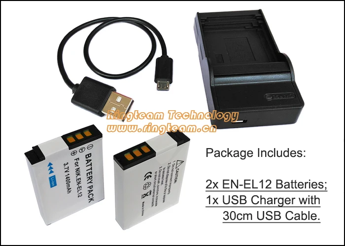 Main Features : 2x ENEL12 EN-EL12 Battery and 1x USB Charger (3-In-1) for Nikon Coolpix S6000 S800c S1000pj S1100pj S1200pj AW100 AW110 Cameras