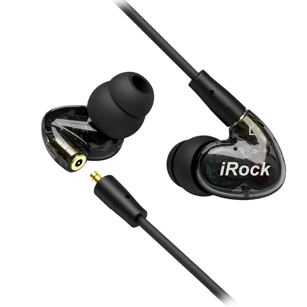 Main Features : iROCK A8 In ear Earphone Noise Canceling Transparent Wired Super Bass headsets DJ Dual Driver with mic for iphone ios cell phone