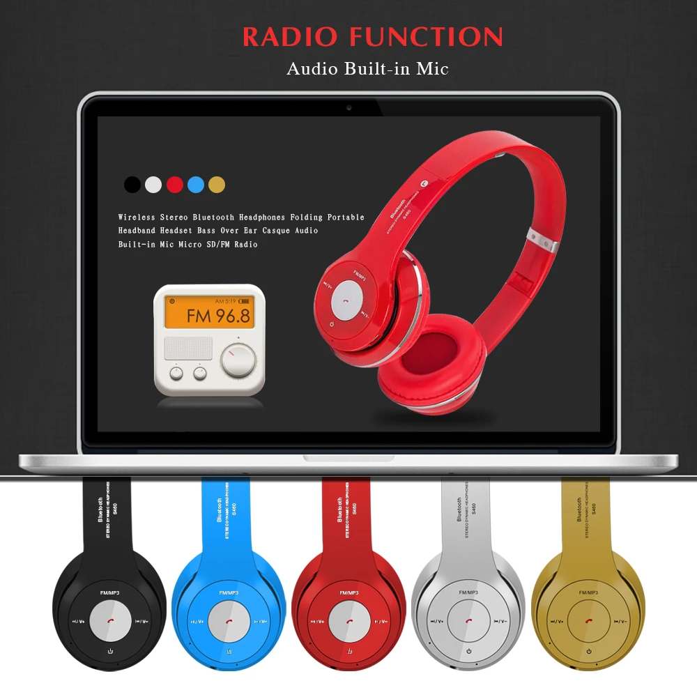 Main Features : Original S460 Bass Wireless Bluetooth Headphone with Mic Portable Music Headset High quality Handband Support TF Card, FM Radio