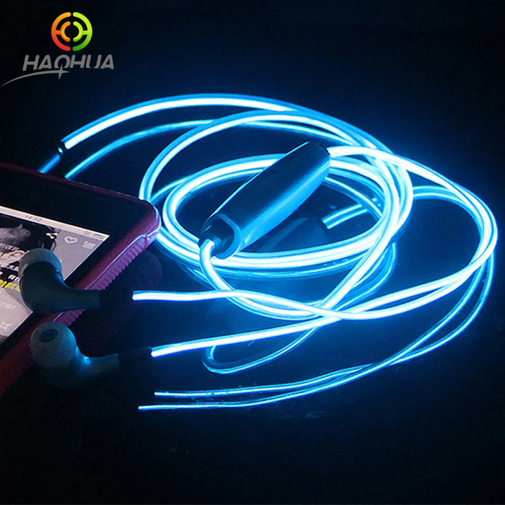 Main Features : 2016 HAOHUA in Ear EL Earphones with Microphone Luminous Glow Cellphone earphone Flowing Light Headset for Mp3 Sport