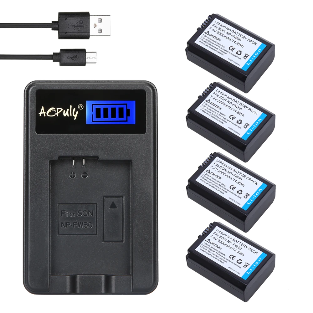 Main Features : AOPULY 4Pcs NP-FW50 NP FW50 Battery + LCD USB Charger for SONY A5000 A5100 A7R A6000 5T 5C 3N A7 NEX6 NEX7 NEX5TL NEX5R NEX5N