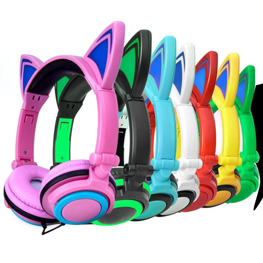 Main Features : Foldable Flashing Glowing Cat Ear Headphones Gaming Headset Earphone with LED Light For PC Laptop Computer Mobile Phone